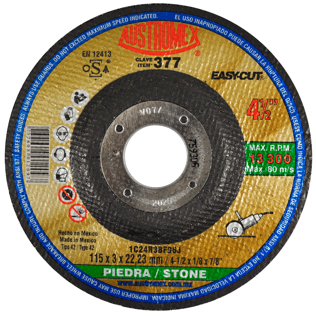 377 42 1C24R3BF96J 4-1/2 x 1/8 x 7/8 AUSTROMEX Disco con centro deprimido para corte de piedra Esmeriladora Angular