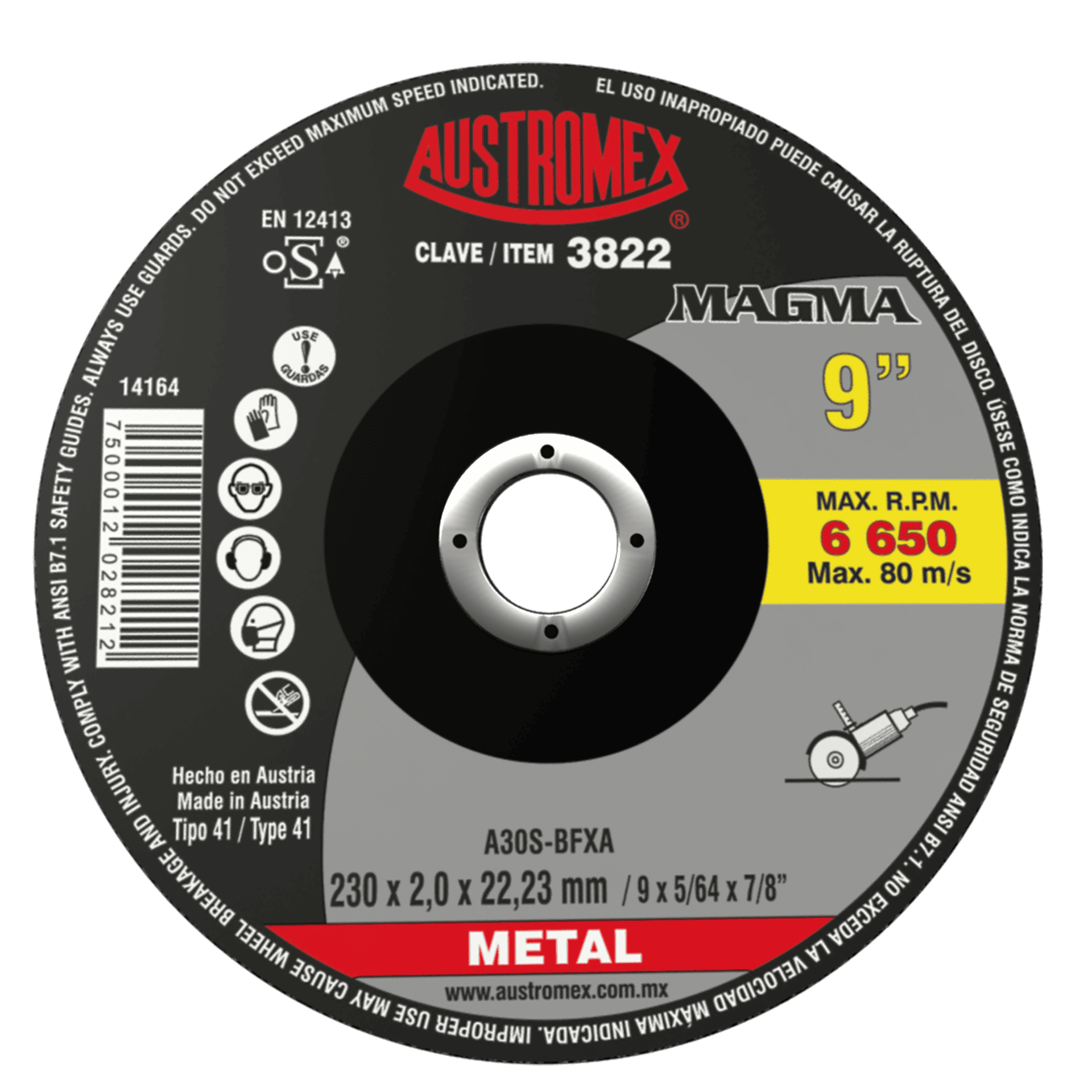 3822 41 A30S-BFXA 9 x 5/64 x 7/8 AUSTROMEX Disco de corte para acero de 230 x 2.0 x 22.23, MAGMA Esmeriladora Angular