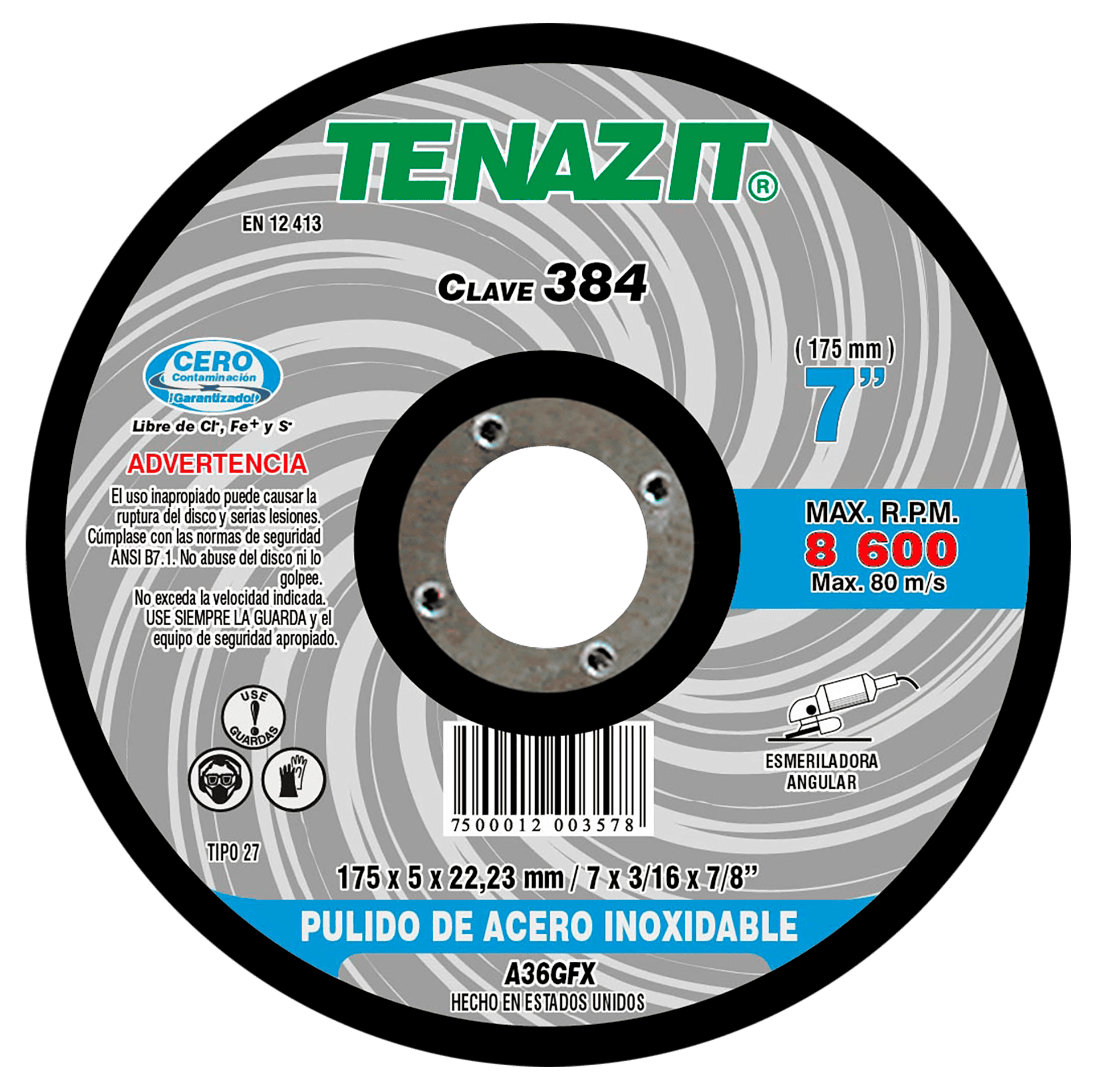 384 27 A36GFX 7 x 3/16 x 7/8 TENAZIT Disco con centro deprimido para pulido de acero inoxidable Esmeriladora Angular