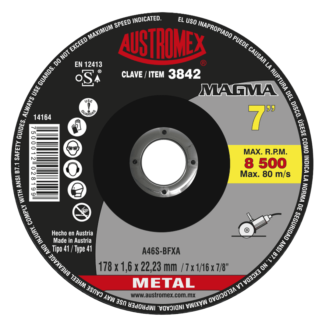 3842 41 A46S-BFXA 7 x 1/16 x 7/8 AUSTROMEX Disco de corte para acero de 178 x 1.6 x 22.23, MAGMA Esmeriladora Angular