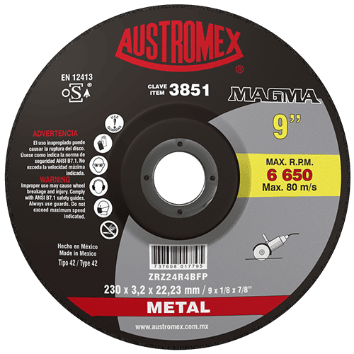 3851 42 ZRZ24R4BFP 9X1/8X7/8 AUSTROMEX Disco con centro deprimido para corte de metal Esmeriladora Angular