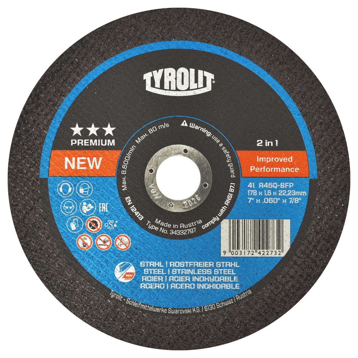 4271 41 A46Q-BFP 7 x 1/16 x 7/8 TYROLIT Disco de corte 2 en 1 para acero e inoxidable de 178 x 1.6 x 22.23 mm. Esmeriladora Angular
