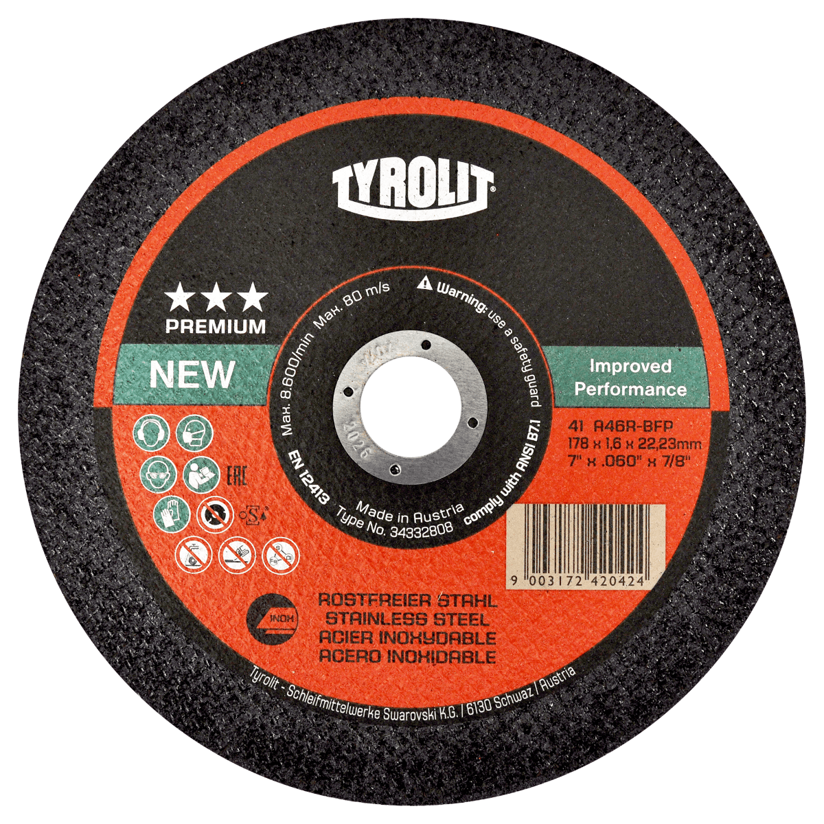 4272 41 A46R-BFP 7 x 1/16 x 7/8 TYROLIT Disco de corte de 178 x 1.6 x 22.23 mm para acero inoxidable. Esmeriladora Angular