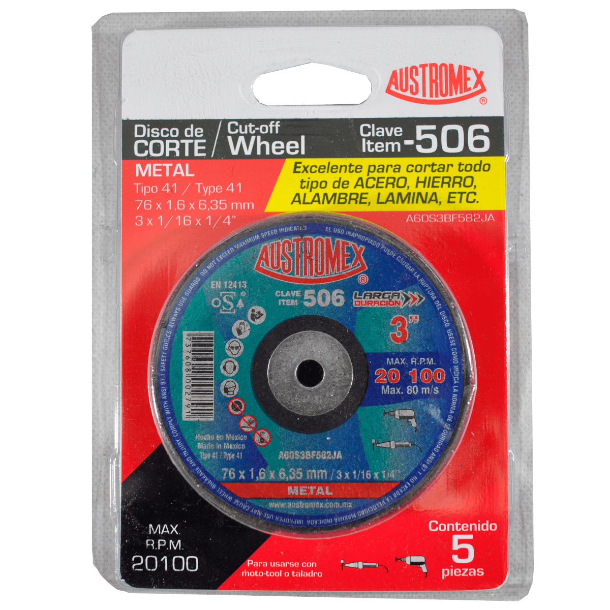 -506 PAQ 5 DC A60S3BF582JA 3 x 1/16 x 1/4 AUSTROMEX EXCELENTE PARA CORTAR TODO TIPO DE ACERO, HIERRO,