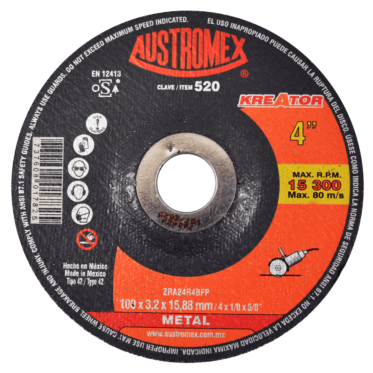 520 42 ZRA24R4BFP 4 x 1/8 x 5/8 AUSTROMEX Disco con centro deprimido para corte de metal Esmeriladora Angular