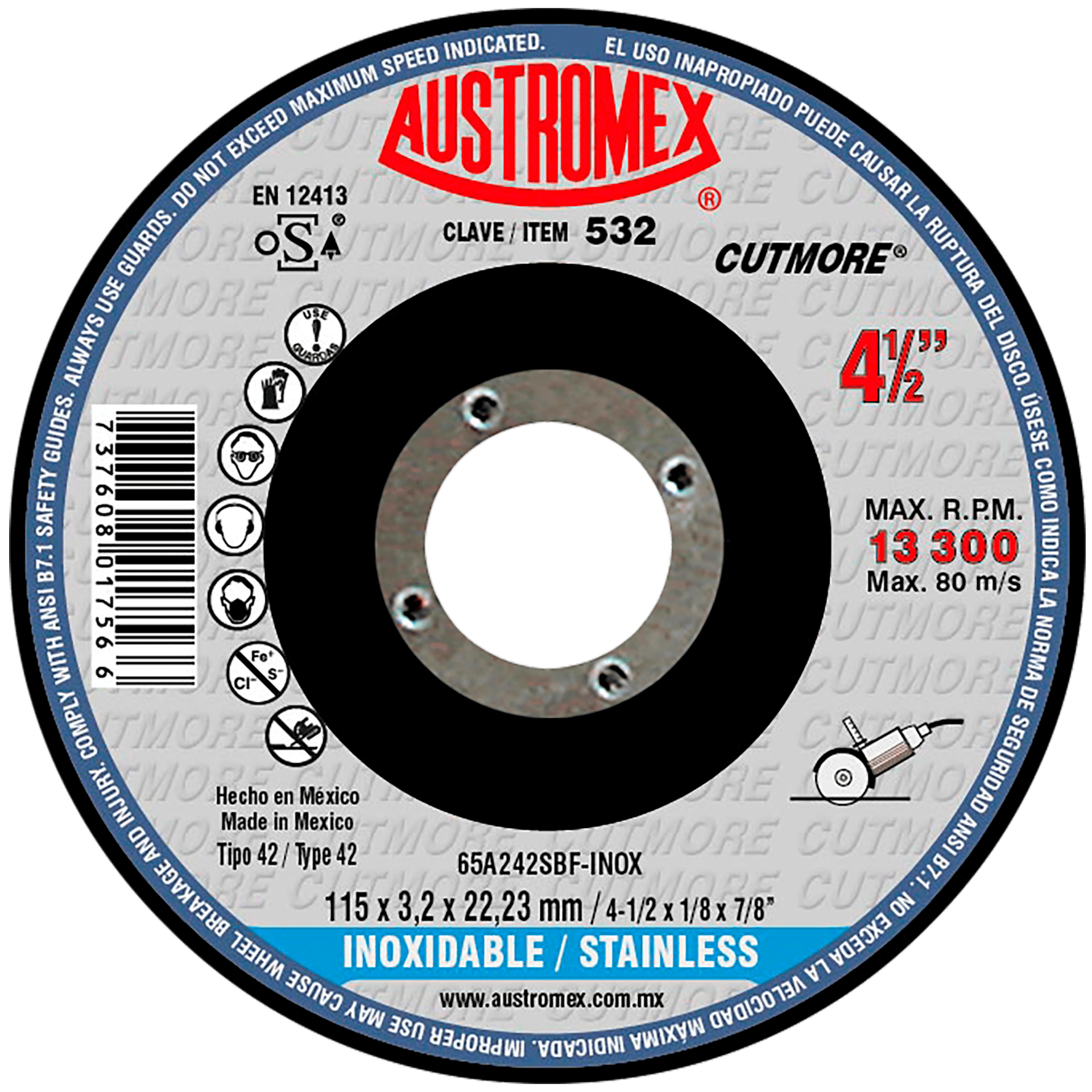 532 42 65A242SBF-INOX 4-1/2 x 1/8 x 7/8 AUSTROMEX Disco con centro deprimido para corte de acero inoxidable Esmeriladora Angular