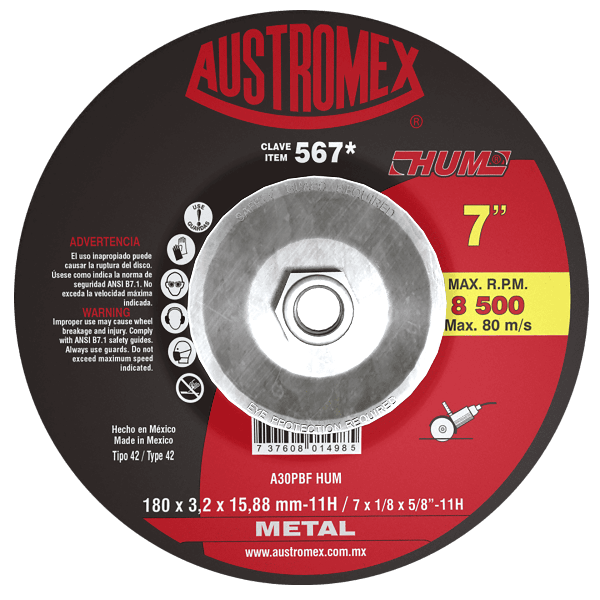 -567 42 A30BFP-HUM 7 x 1/8 x 5/8-11 AUSTROMEX Disco con adaptador integrado para corte de metal Esmeriladora Angular