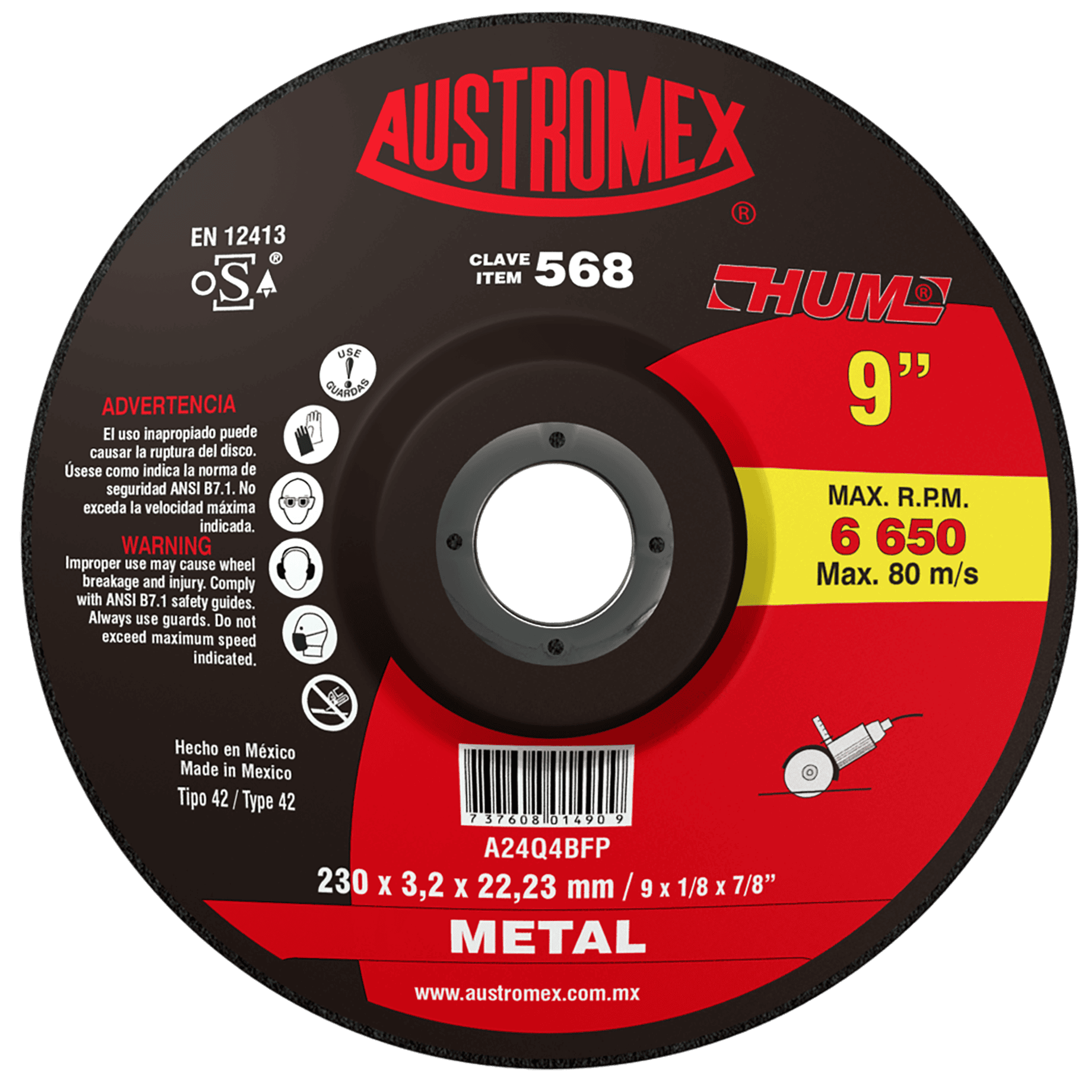 568 42 A24Q4BFP 9 x 1/8 x 7/8 AUSTROMEX Disco con centro deprimido para corte de metal Esmeriladora Angular