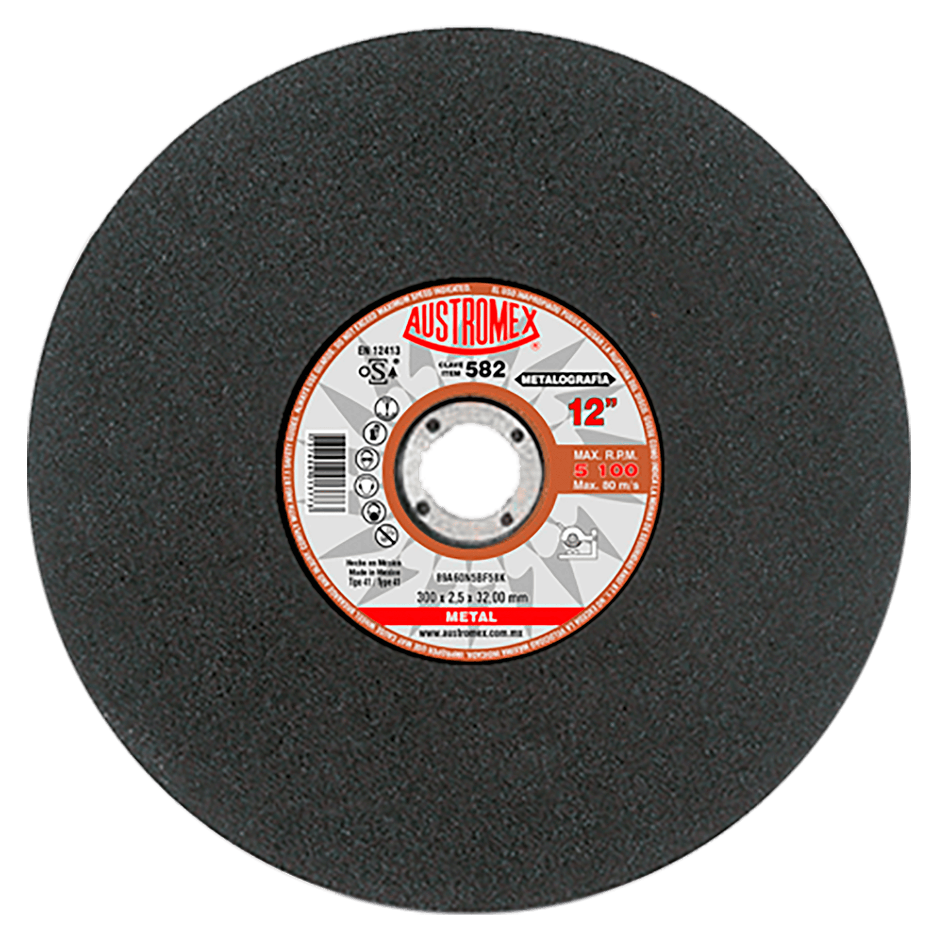 582 41 89A60N5BF58K 12 x 3/32 x 1-1/4 AUSTROMEX Disco para pruebas metalográficas Cortadora Estacionaria