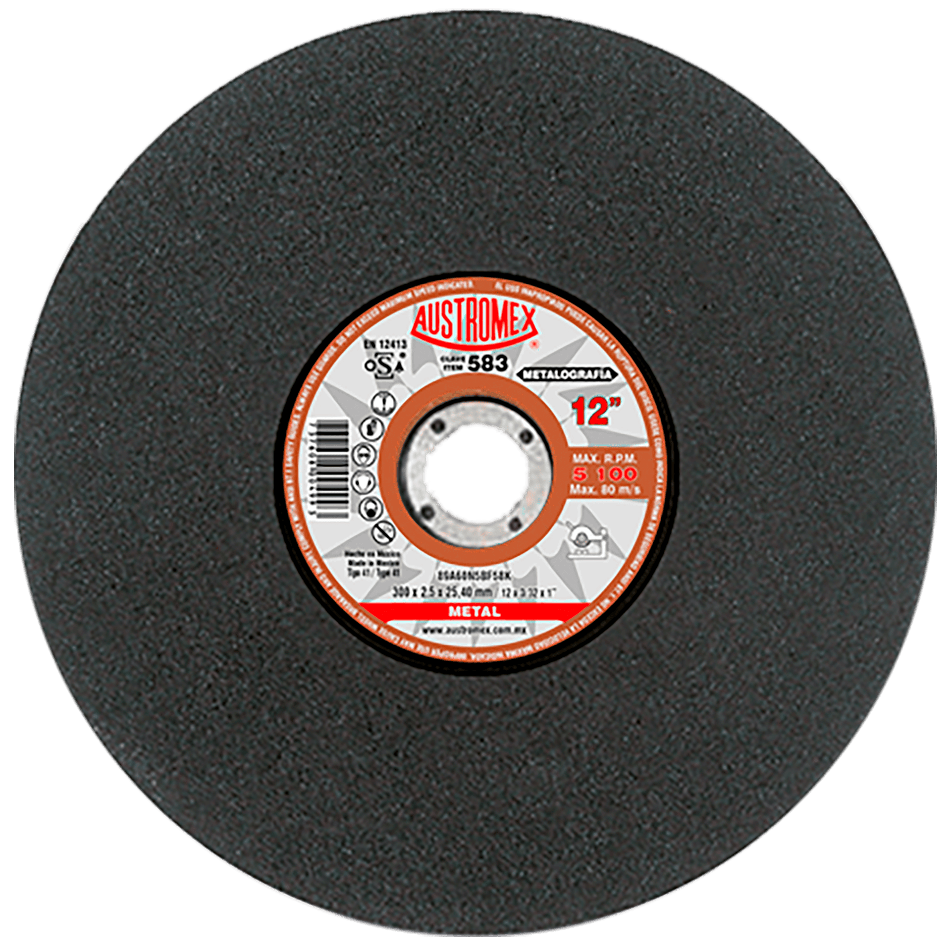 583 41 89A60N5BF58K 12 x 3/32 x 1 AUSTROMEX Disco para pruebas metalográficas Cortadora Estacionaria