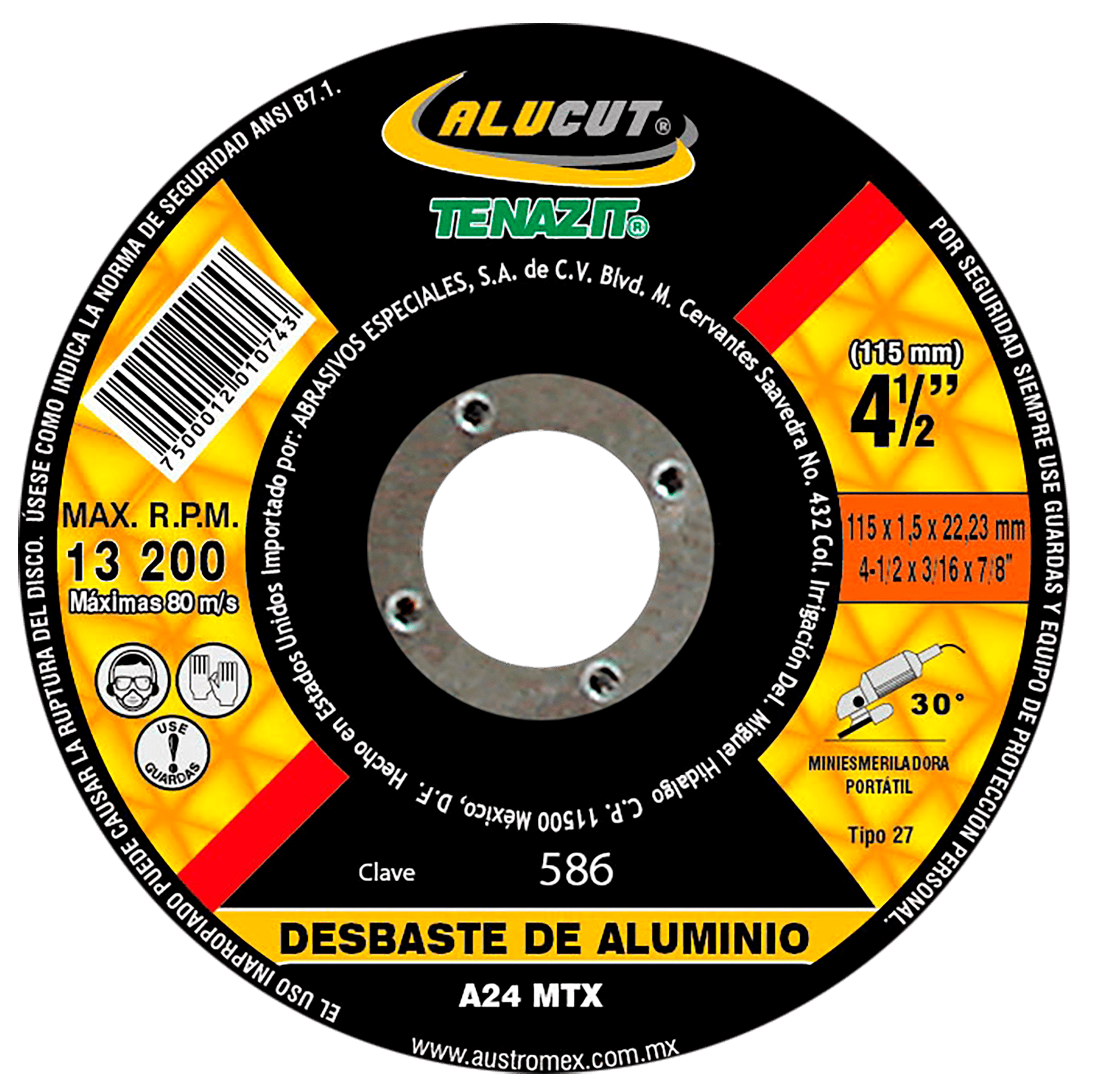 586 27 A24 MTX 4-1/2 x 3/16 x 7/8 TENAZIT Disco con centro deprimido para desbaste de aluminio Esmeriladora Angular