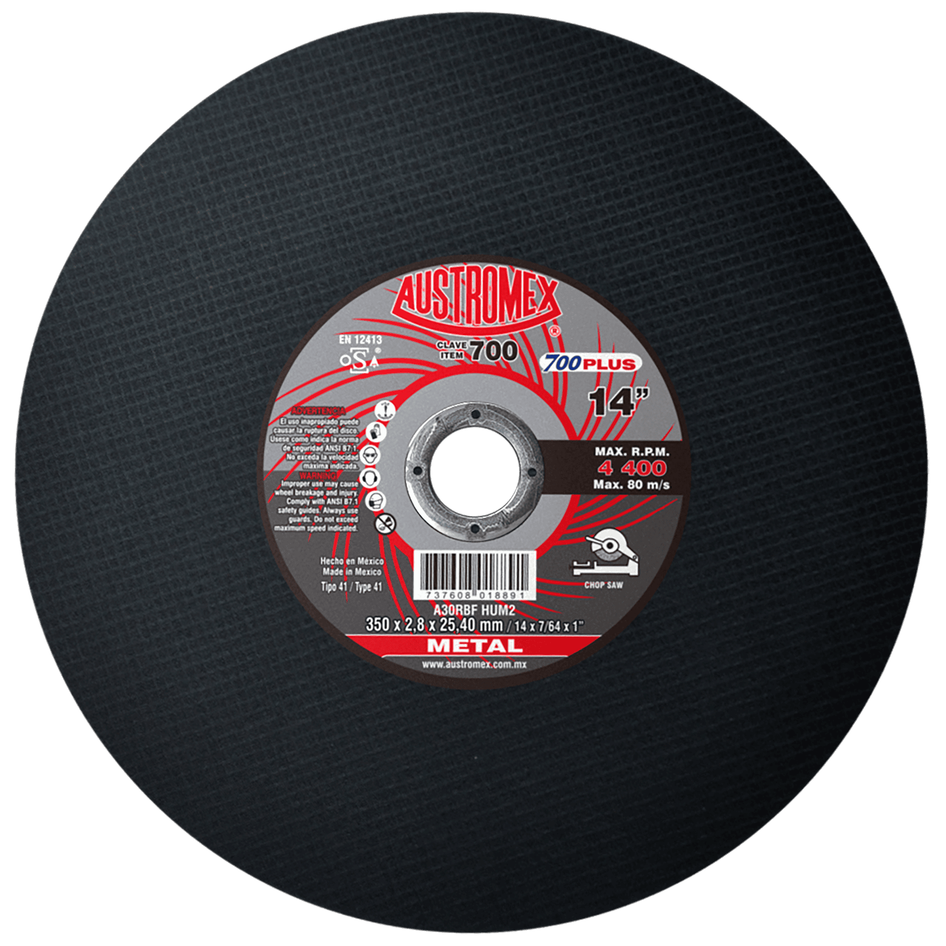 700 41 A30RBF-HUM2 14 x 7/64 x 1 AUSTROMEX Disco para corte de metal (huecos) Chop Saw