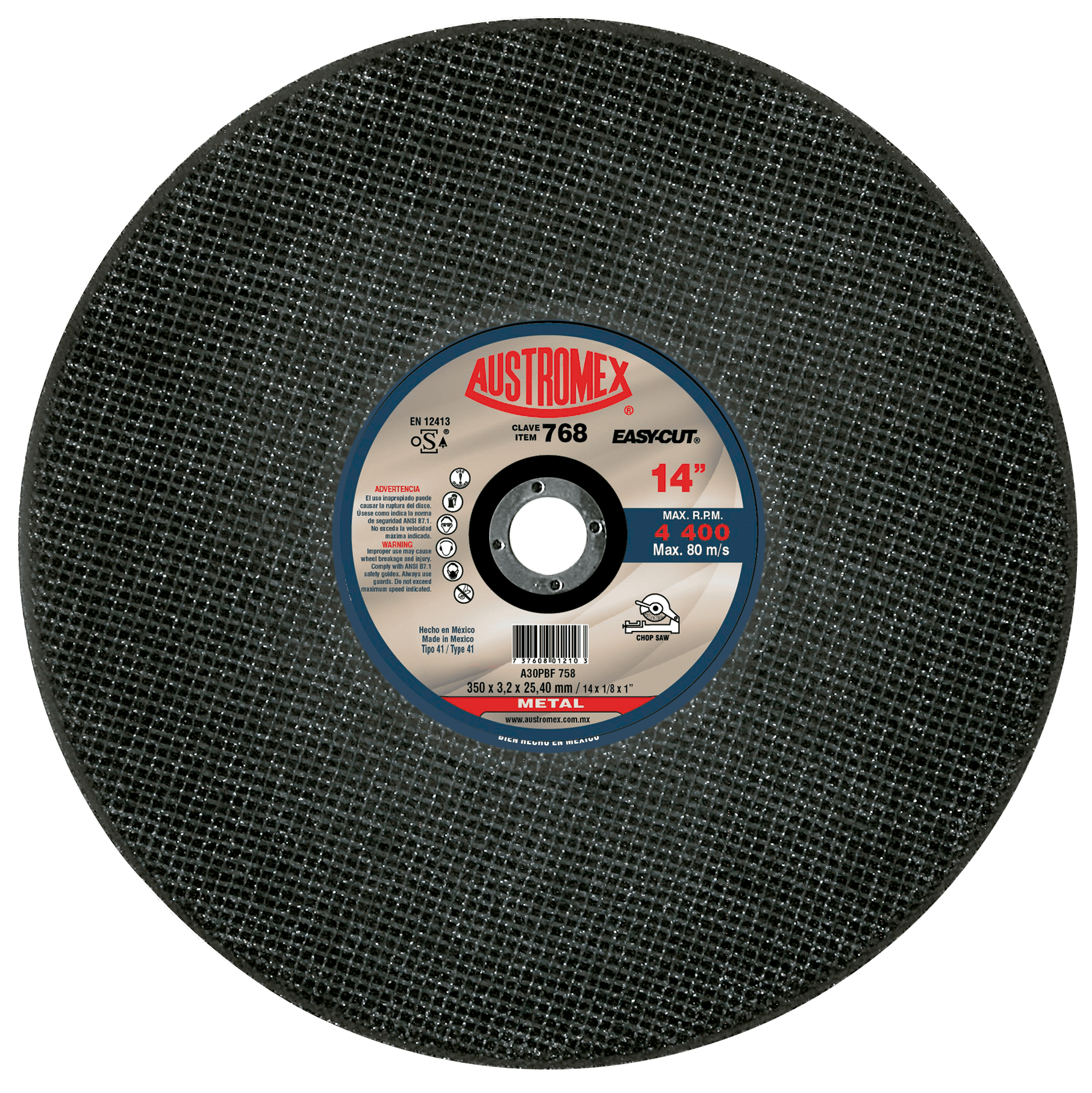 768 41 A30PBF 758 14 x 1/8 x 1 AUSTROMEX Disco para corte de metal Chop Saw