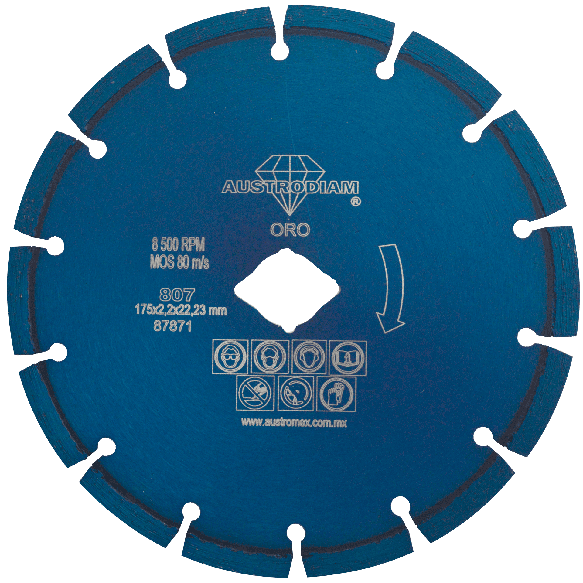 807 D.D.D. AZUL ORO 7 x 0.100 x 7/8 AUSTRODIAM Disco de diamante azul segmentado Uso General Esmeriladora Angular