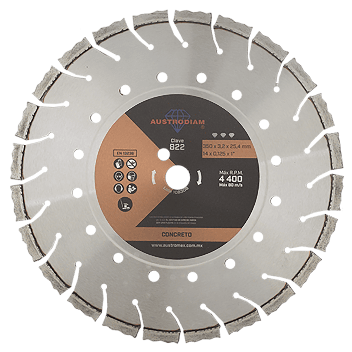 822 D.D.D. NARANJA ORO 14 x 0.125 x 1 AUSTRODIAM Disco de diamante naranja segmentado Corte de concreto curado Cortadora de Piso