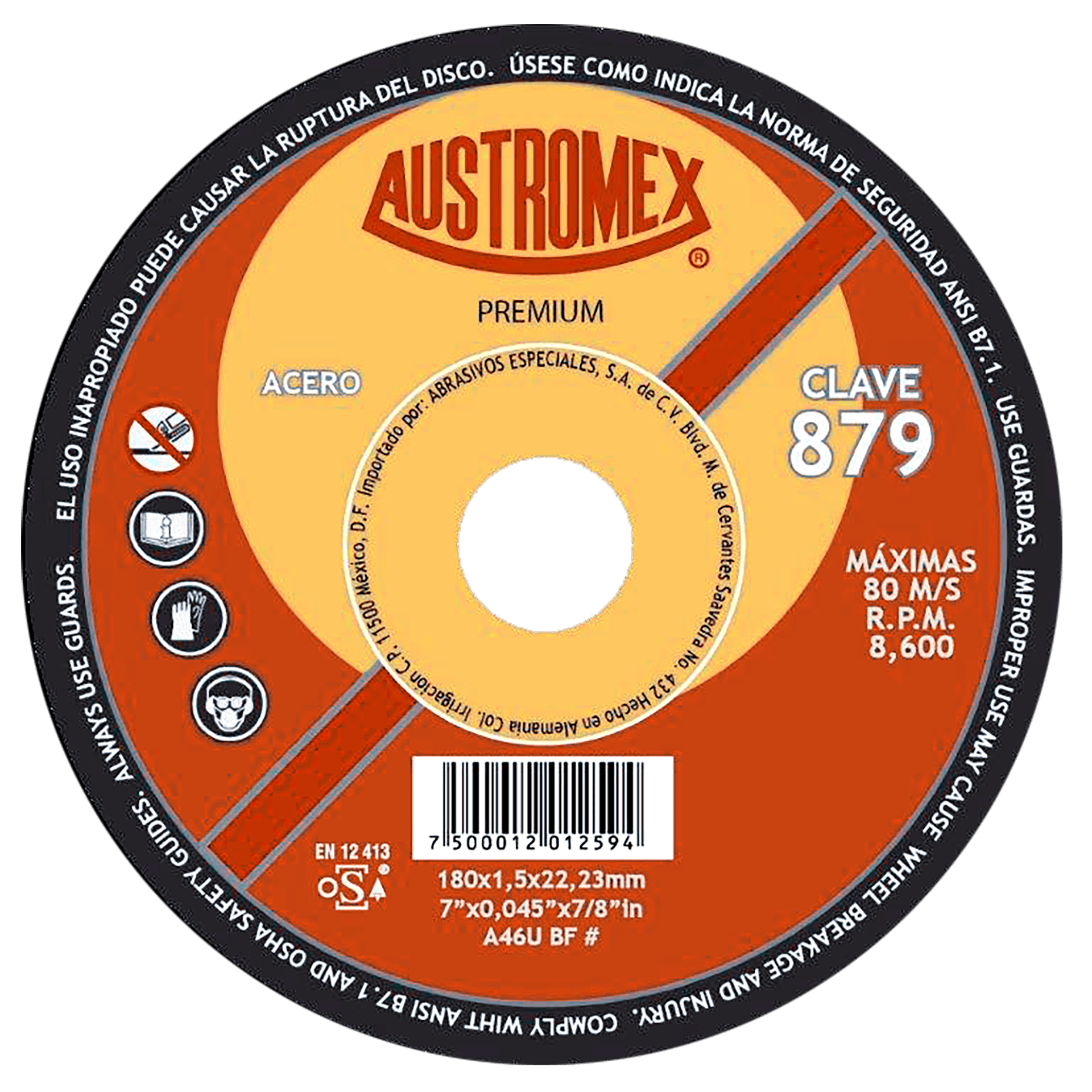 879 41 A46U BF 7 x 1/16 x 7/8 AUSTROMEX Disco para corte de metal Esmeriladora Angular