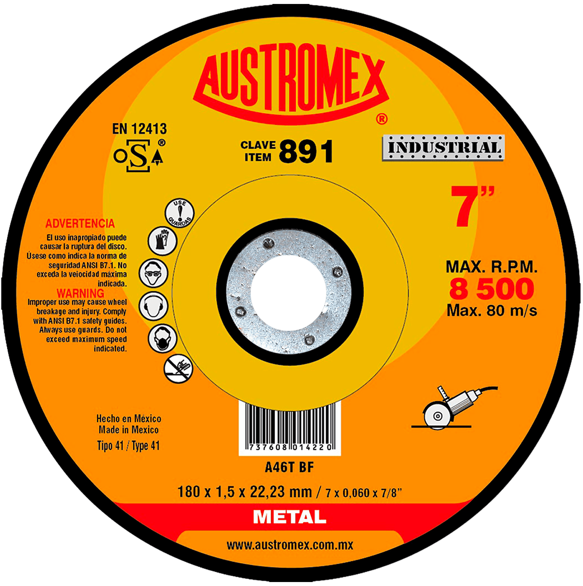 891 41 A46T BF 7 x 0.060 x 7/8 AUSTROMEX Disco para corte de metal Esmeriladora Angular
