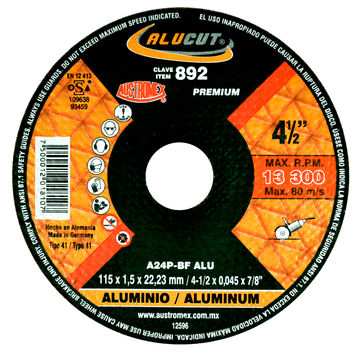 892 41 A24P-BF ALU 4-1/2 x 0.06 x 7/8 AUSTROMEX Disco para corte de aluminio Esmeriladora Angular