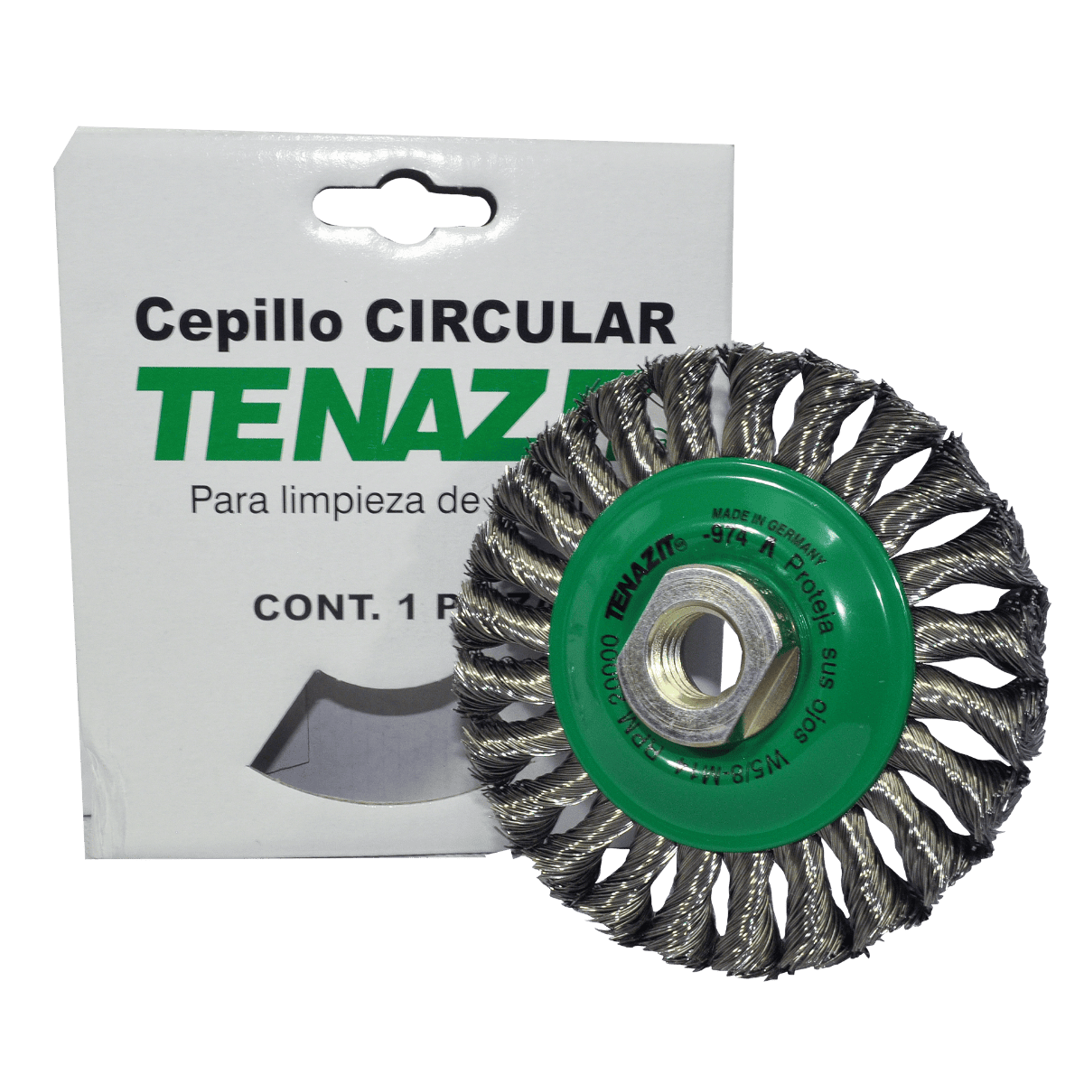 -974 CRT INOX.C.CIRCULAR TREN. 4 x 0.014 x MR TENAZIT Cepillo circular trenzado de 100 x 0.356 x MR mm para limpieza de superficies de acero inoxidable y remoción de soldadura, pintura y fundición Esmeriladora Angular