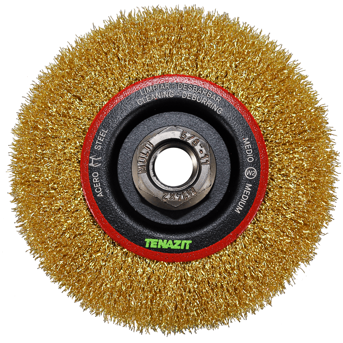 989 C.R.O. C.CIRC. OND.AC.CARB.LAT. 4-1/2 x 0.012 x MR TENAZIT Cepillo circular de Alambre ondulado Latonado Esmeriladora Angular