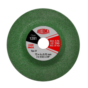 1281 3X5/32X3/8 Mini disco tipo 27 de 75 mm – Grano 80 para acabado fino.