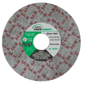 1655 4 1/2X1/8 X7/8 Disco unix de óxido de aluminio, densidad 6, grano medio para rebabeo de metal y pre pulido.