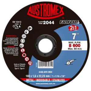 2044 7X1/16X7/8 Disco de corte 2 en 1 para acero al carbón y acero inoxidable de 180 x 1.6 x 22.23, EASY CUT