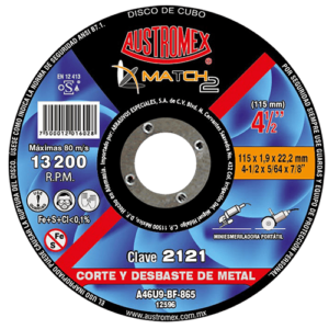 2121 4-1/2X5/64X7/8 Disco con centro deprimido para corte y desbaste de metal